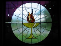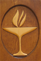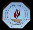 Because the chalice is the central symbol for Unitarian Universalists, the chalice itself can be an important part of the service. Above are three lovely chalices that we encountered during our journey. Notice that in each one the flame is easily visible by the congregation. Other congregations who use a less beautiful chalice setting or, worse, have a free-standing fat candle serve as the "chalice" (the flame in a fat candle is usually hidden by the high walls of wax) are missing an important opportunity to enhance the sacred and reverential feel of the setting.