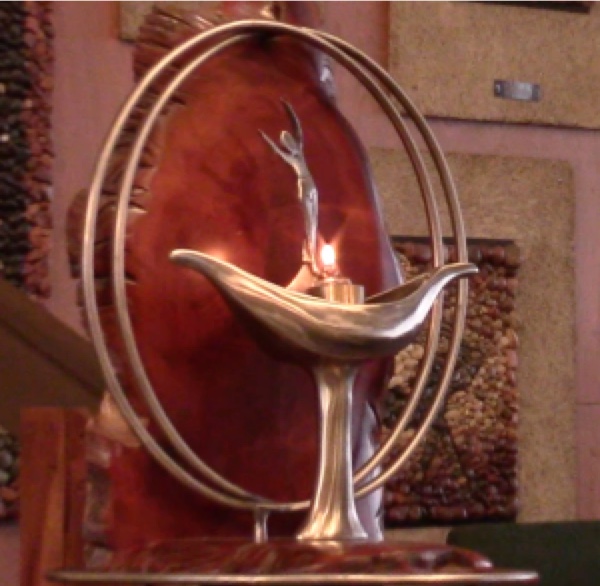 In the photos above, the porcelain chalice on the left is at the UU Fellowship of Clemson SC; the central bronze chalice is at the UU Fellowship of Flagstaff AZ; and the glass chalice on the right is at the UU Church of Berkeley, CA.4. LIGHTING THE CHALICE