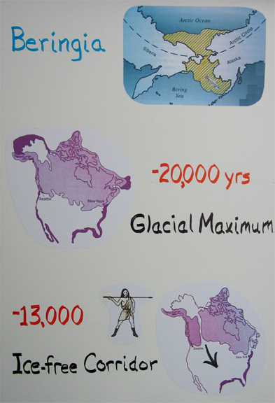 The Clovis culture of mammoth hunters entered North America approx. 13,000 years ago, when glacial meltback opened an ice-free corridor east of the Rockies.
