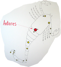 Red Giant stars in Scorpio (Antares) and Orion (Betelgeuse)