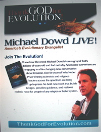 MICHAEL DOWD is the author of Thank God for Evolution (2008, Viking/Plume). During the 1980s and 90s he pastored three United Church of Christ congregations, worked with Jewish, Catholic, Protestant, Evangelical, Unity, and Unitarian Universalist leaders throughout the U.S. on environmental issues, and managed municipally funded Sustainable Lifestyle Campaigns on both coasts. A gifted speaker and well-known teacher on the sacred and psychological implications of a science-based cosmology, Michael has addressed more than a thousand secular and religious groups over the past two decades, particulary since Spring 2002, when he and his wife launched their itinerant teaching work. His great joy in life is telling the 14 billion year history of everyone and everything in ways that evoke awe, gratitude, and trust, inspire faith, and empower people to follow the path where their own great joy and the world's great need intersect. NOTE: Michael often speaks to Christian audiences, where he elicits an enthusiastically positive response. Yet he has also spoken to hundreds of groups of atheists and other non-religious groups and received equally positive responses. His 2008 garnered endorsements from six Nobel scientists. He is especially skilled at speaking to audiences of diverse worldviews, such as one might find in a college classroom. In those circumstances, his words appeal to the full range of views: from biblical literalists to atheists. (Click for samples of wide audience appeal.)