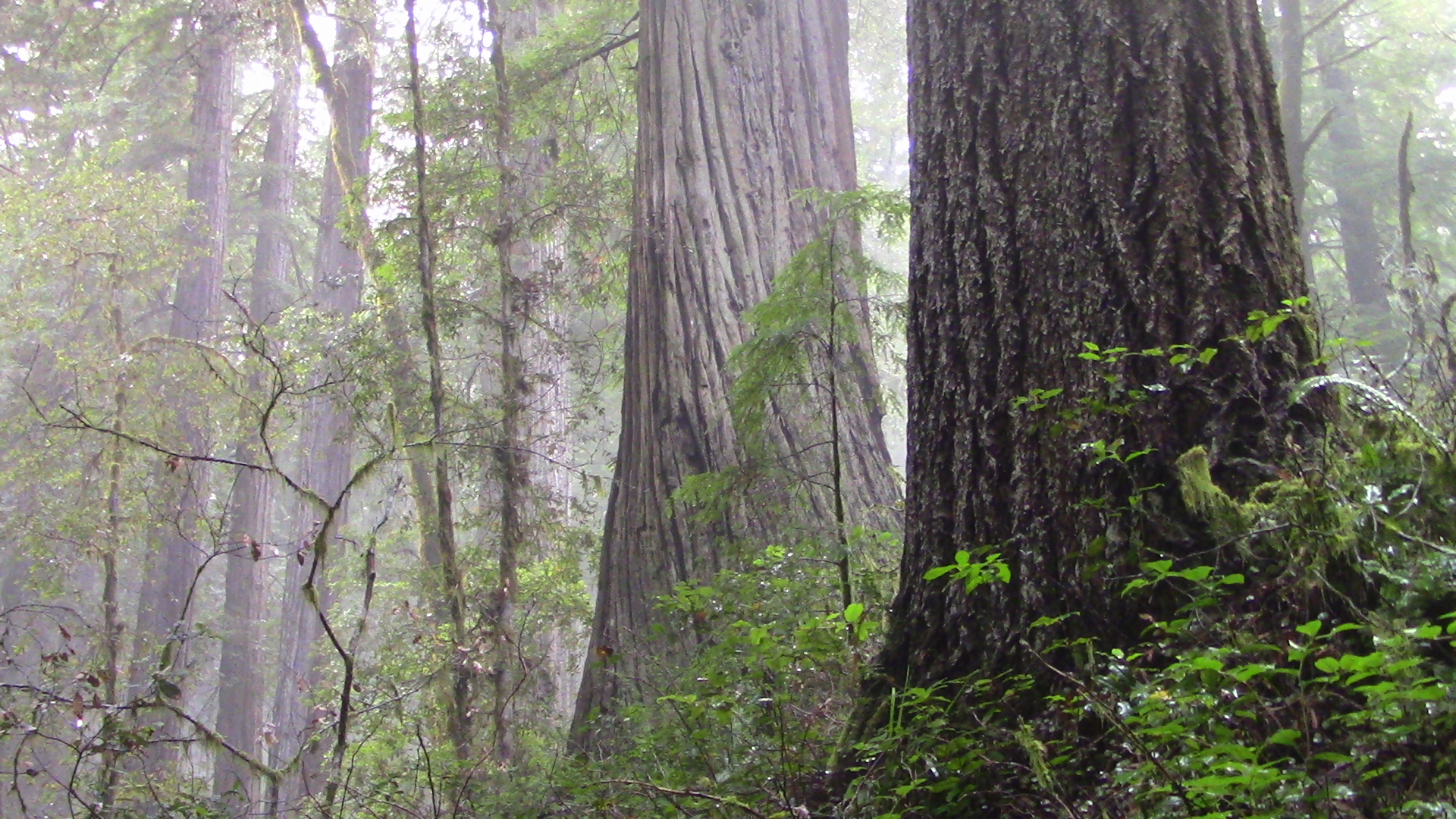 ABOVE: DOUGLAS-FIR in Prairie Creek State Park (left) and a foggy Lady Bird Johnson Grove (right)
