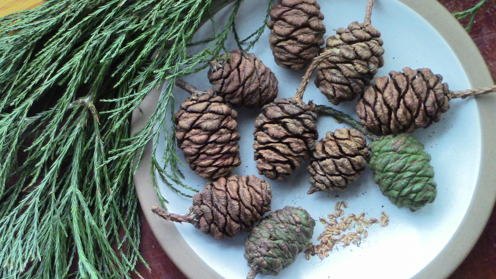ABOVE: The common name, Giant Sequoia, can be confused with the genus name, Sequoia, of Coast Redwood.ABOVE RIGHT: Squirrels and seed collectors harvest Coast Redwood cones when still green, before the scales fully open.