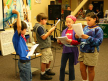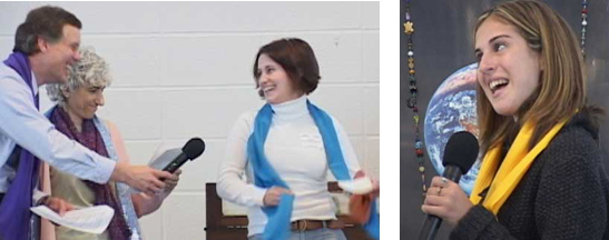 In 2007, Connie Barlow led a group of teens at a Unitarian Universalist church in Kentucky through a dialogue for understanding "Your Brain's Creation Story", using the two charts of the quadrune brain pictured above. The session culminated with 5 student volunteers reading dramatic scripts for "Menagerie of the Mind", and embellishing their roles by using the hand puppets pictured at left. Clearly, it was great fun for all. Most telling, the next evening a mother of one of the boys, who was attending Michael Dowd's evening program, came up to me with a look of wonder on her face. She said, "My son was in your class, and afterwards, he told me about it excitedlyhe must have kept talking for a half hour!" The religious education director later told me that several of the teens said they would love to have tee-shirts bearing the animal symbols of the quadrune brain (above right), so we are now making those available through the "store" webpage at ThankGodforEvoulution.com.