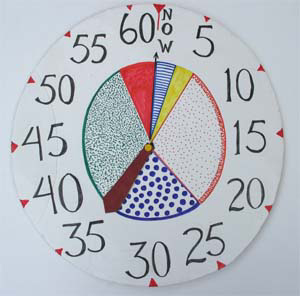 Because North America was "born" as a land continent about 63 million years ago, when the uplift rising the young Rocky Mountains had also raised what had been the bottom of the Bearpaw Seaway, one can visualize the Cenozoic Story of the continent in a clock form, with each "minute" representing a million years. Red is Paleocene; dotted green Eocene; blue spots Oligocen; red dots Miocene; yellow Pliocene; blue lines Pleistocene. Return to main list of Great Story CHARTS.